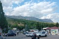 Дороги в посёлке узкие и с высоким подъёмом. Разъехаться сложно. Выстраиваются пробки. Очень много туристов, оживлённо.